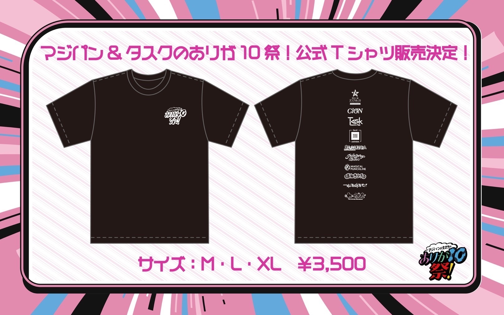 合同特典会参加券・マジパン&タスクのありが10祭公式Tシャツを特典会エリアにて販売させていただきます。