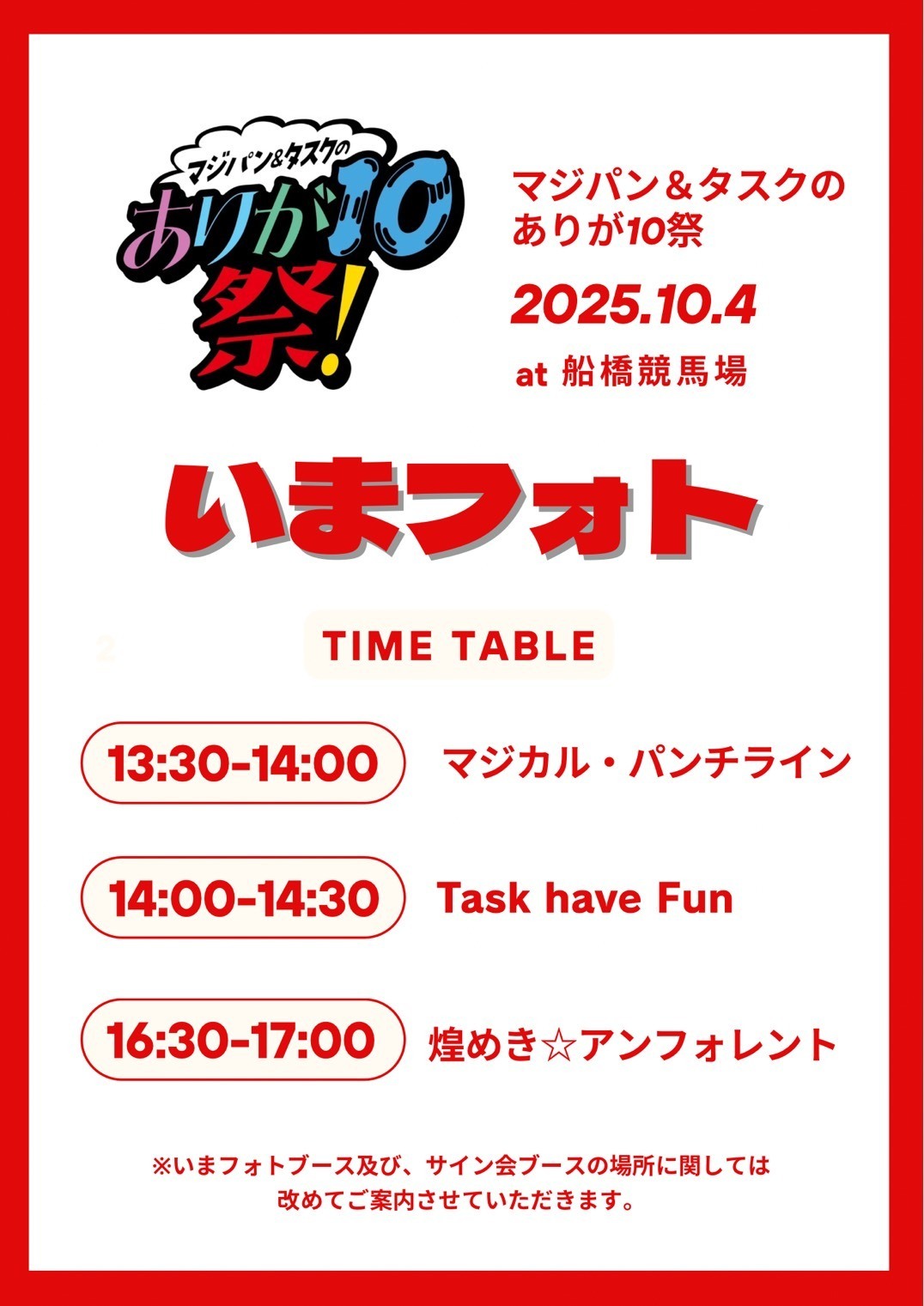 ・いまフォトブースとサイン会の場所は異なりますので、事前に余裕を持って、いまフォトブースへお越しください。